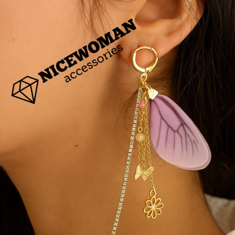 گوشواره زنانه آویز طلایی پروانه نگین دار برند اروپایی Iam ضدحساسیت