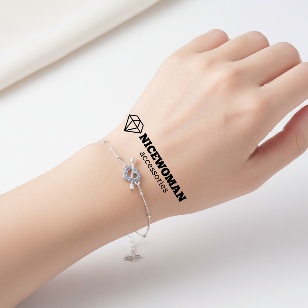 ناموجوددستبند زنانه قلب نقره ای نگین یاسی برند اروپایی accessories ضدحساسیت