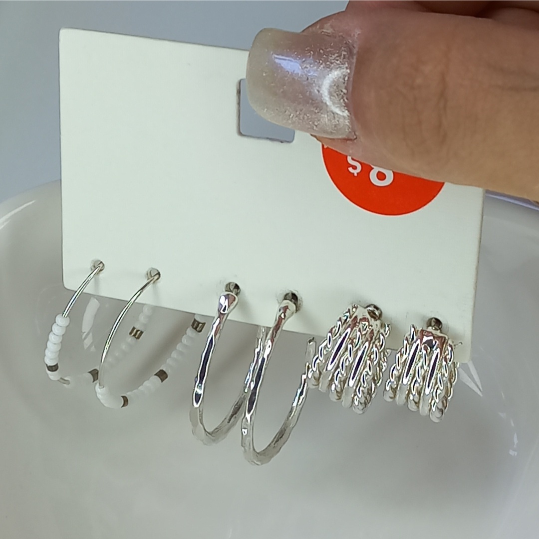 پک گوشواره زنانه نقره ای میخی نیم حلقه ای و حلقه ای مهره رنگی برند اروپایی ضدحساسیت
