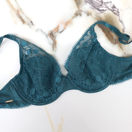 سوتین زنانه فنردار ساتن توری سبز آبی برند اروپایی Ann Summers سایز 70D