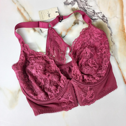 سوتین زنانه فنردار توری زرشکی جلوبازشو برند اروپایی POUR MOI سایز 70J