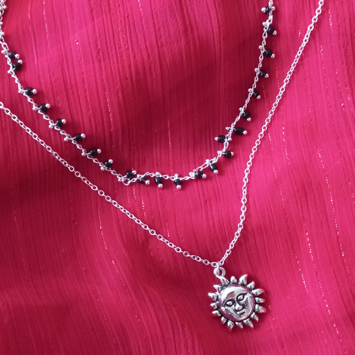 گردنبند زنانه دو ردیف سیاه قلم آویز خورشید برند اروپایی accessories ضدحساسیت