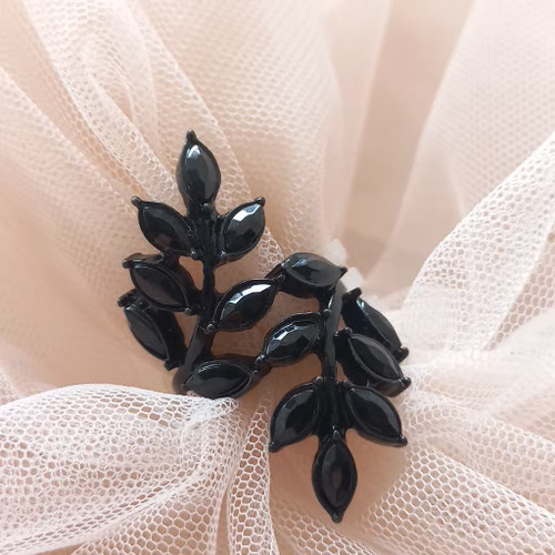 انگشتر زنانه برگ نگین مشکی برند اروپایی ضدحساسیت