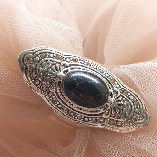 انگشتر زنانه سیاه قلم نگین مشکی نقره ای برند اروپایی ضدحساسیت