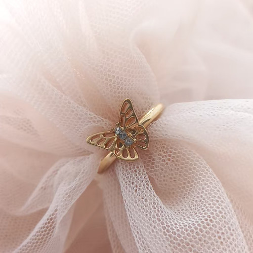انگشتر زنانه پروانه نگین دار طلایی اروپایی ضدحساسیت