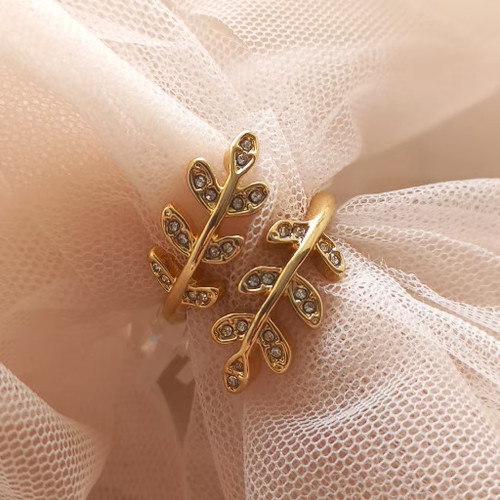 انگشتر زنانه برگ نگیندار طلایی برند اروپایی ضدحساسیت