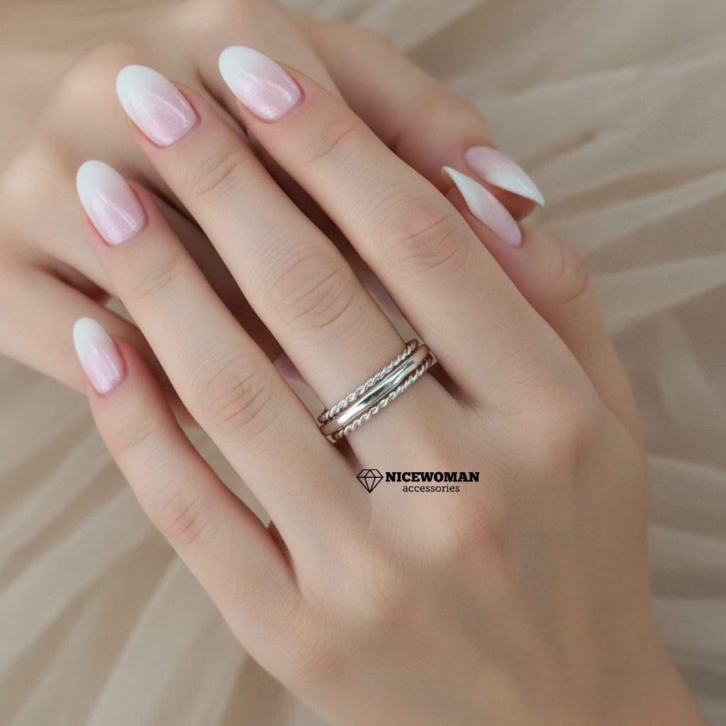 پک انگشتر نقره ای ساده و طرح دار برند اروپایی ضدحساسیت