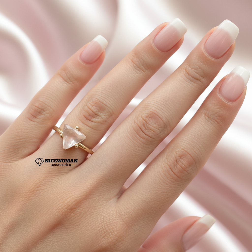 ناموجودانگشتر زنانه نگین مثلثی سنگ رز کوارتز برند اروپایی ضدحساسیت