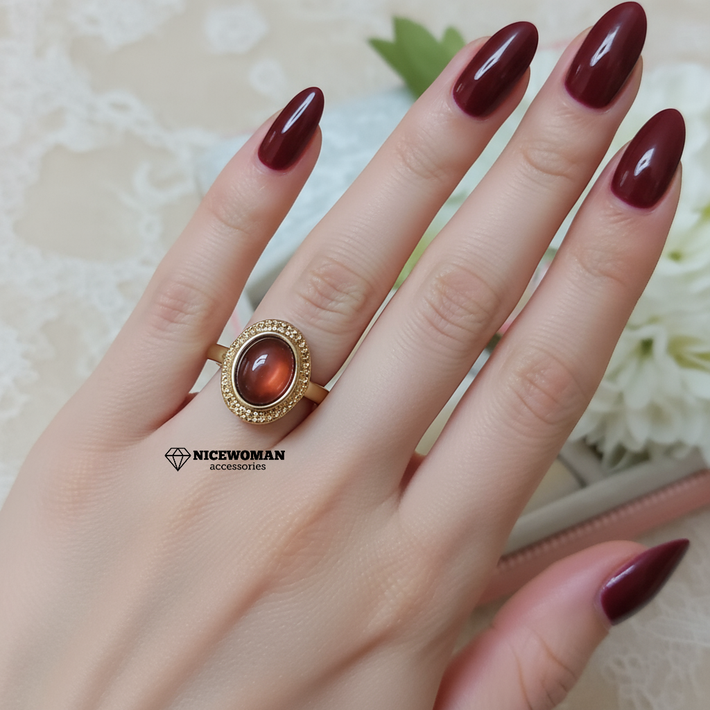 ناموجودانگشتر زنانه نگین قهوه ای برند اروپایی ضدحساسیت
