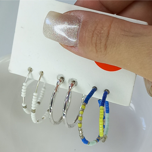 پک گوشواره زنانه نقره ای حلقه ای مهره رنگی برند اروپایی ضدحساسیت