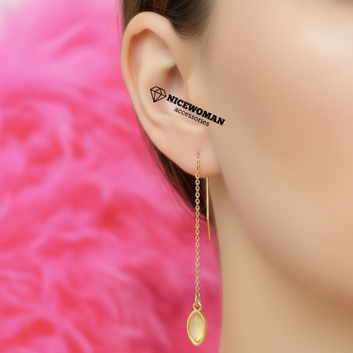 گوشواره زنانه طلایی بخیه آویز سنگ برند اروپایی ضدحساسیت