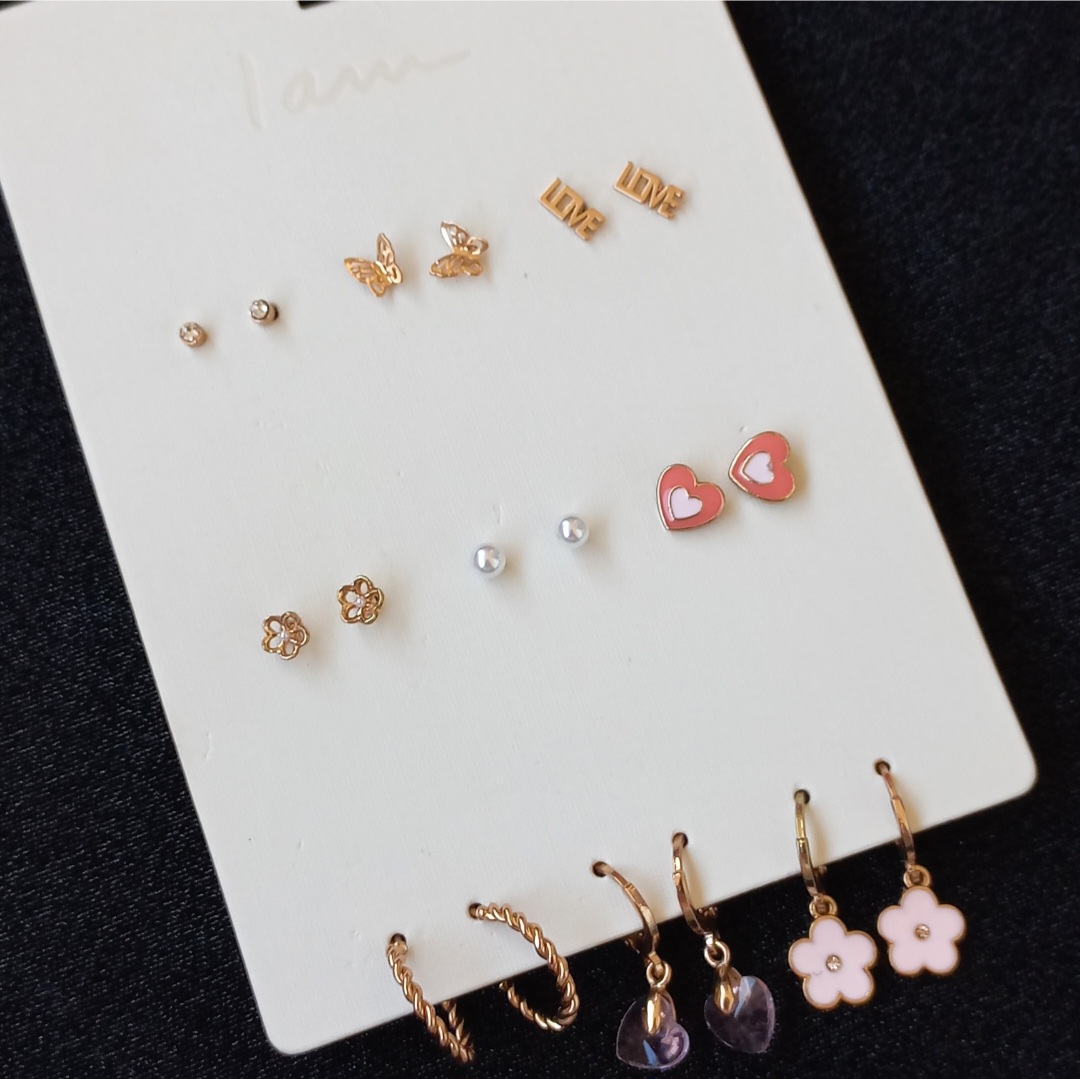 پک گوشواره میخی نگین و مروارید برند اروپایی Iam ضدحساسیت
