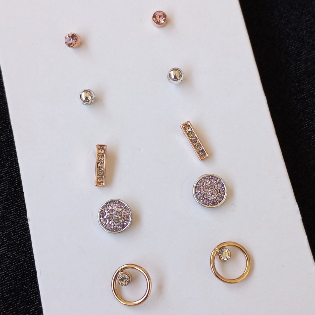 پک گوشواره زنانه حلقه ای نگین دار طلایی نقره ای رزگلد برند اروپایی ضدحساسیت