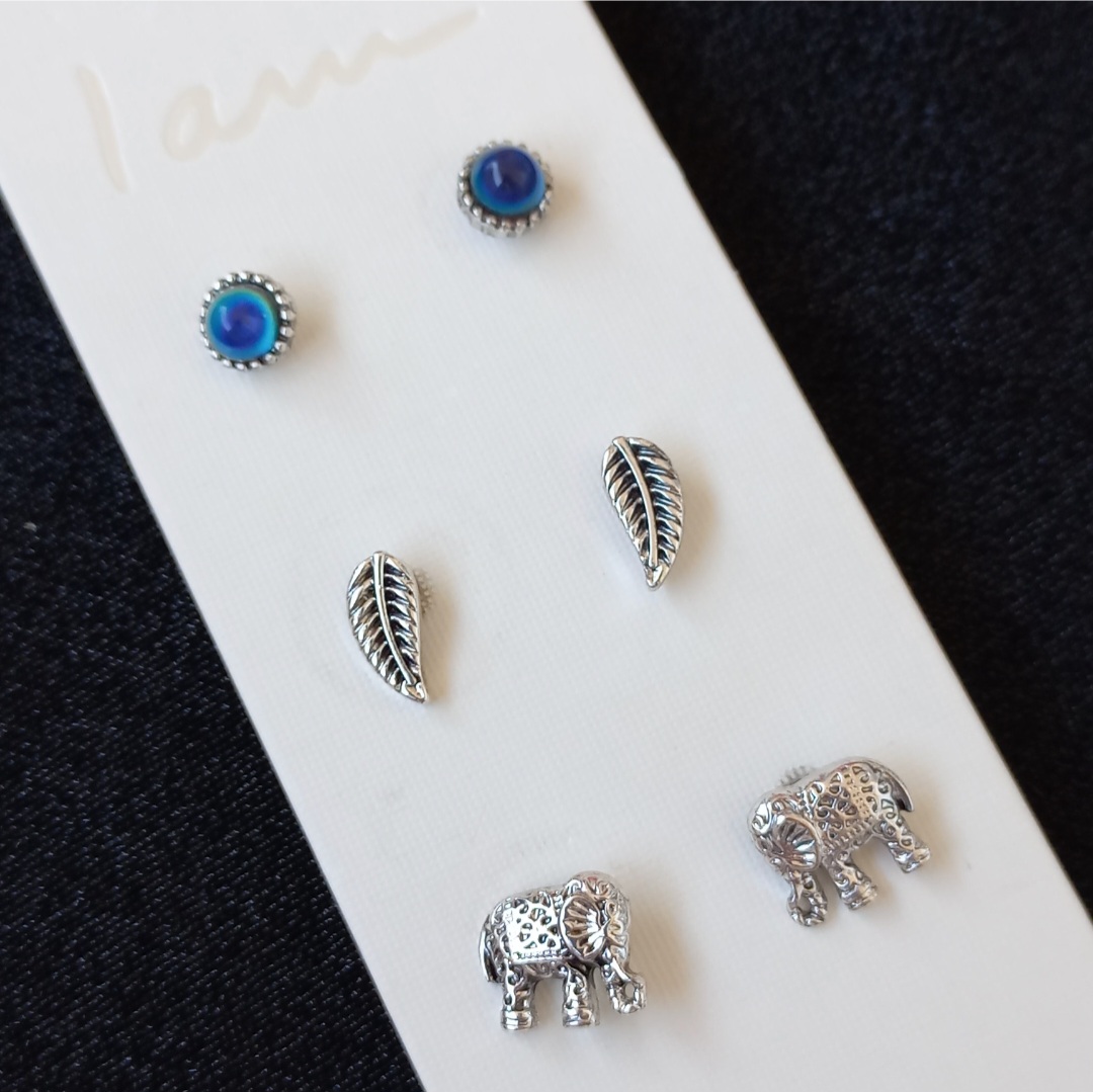 پک گوشواره زنانه میخی نقره ای نگین رنگی برند اروپایی Iam ضدحساسیت