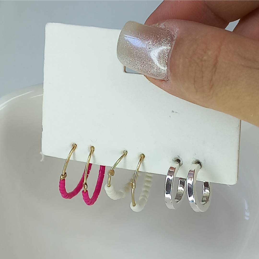 پک گوشواره زنانه نقره ای حلقه ای مهره رنگی برند اروپایی ضدحساسیت