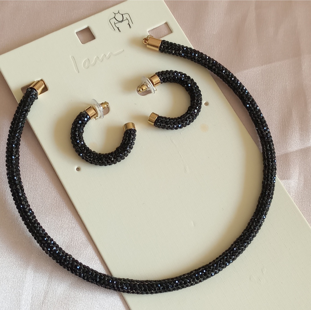 ناموجودنیمست زنانه طوق و گوشواره نگین مشکی برند اروپایی Iam ضدحساسیت