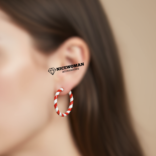 گوشواره زنانه میخی نیم حلقه ای کریسمس آبنبات برند اروپایی Iam ضدحساسیت