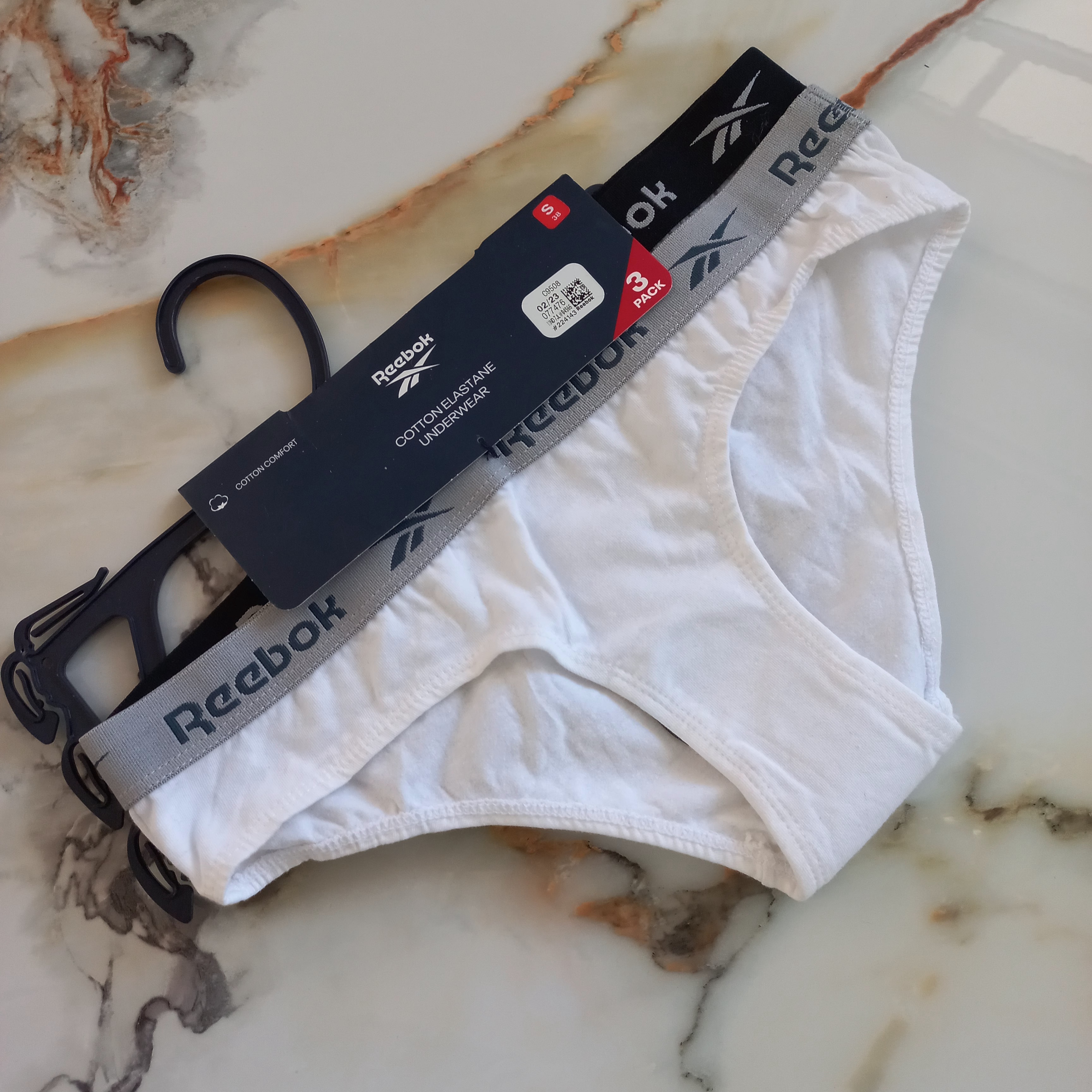 ناموجودپک شورت زنانه نخی کمر کش طوسی و سفید برند اروپایی Reebok