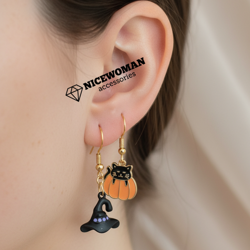 پک گوشواره زنانه میخی هالووین روح و کدو و گربه برند اروپایی Iam ضدحساسیت
