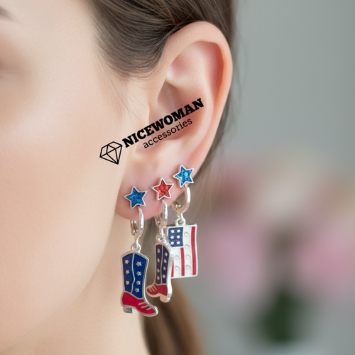 گوشواره زنانه نقره ای طرح ستاره نگین دار آبی قرمز سفید برند اروپایی آلمانی Iam ضدحساسیت