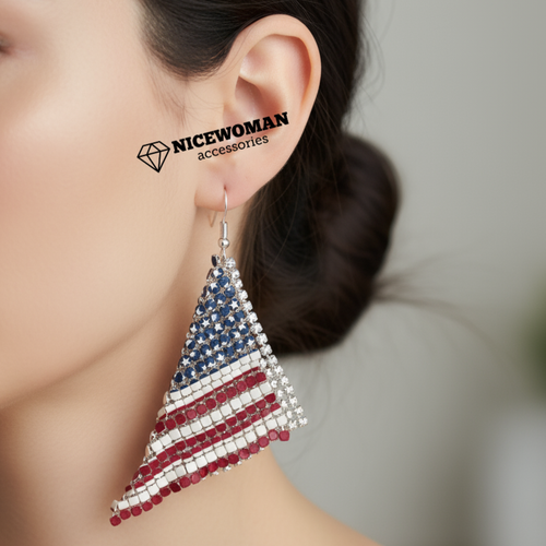گوشواره زنانه آویز نقره ای طرح پرچم سه رنگ برند اروپایی Iam ضدحساسیت