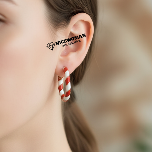 گوشواره زنانه میخی نیم حلقه ای کریسمس آبنبات برند اروپایی Iam ضدحساسیت