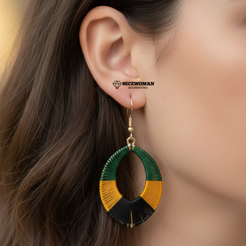 گوشواره زنانه آویز طلایی مکرومه سه رنگ برند اروپایی accessories ضدحساسیت