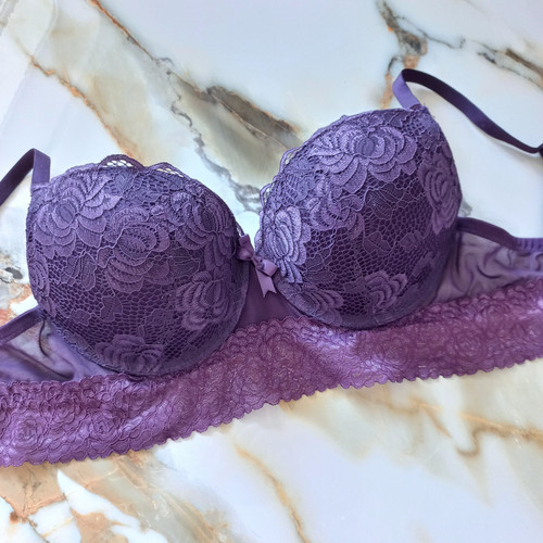 سوتین زنانه اسفنجی پوشاپ فنردار توری بنفش برند اروپایی bras nthings