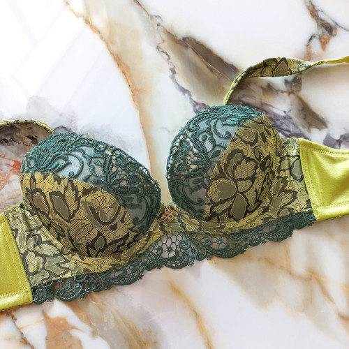 سوتین زنانه اسفنجی فنردار توری سبز برند اروپایی UNDIZ