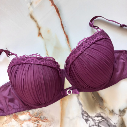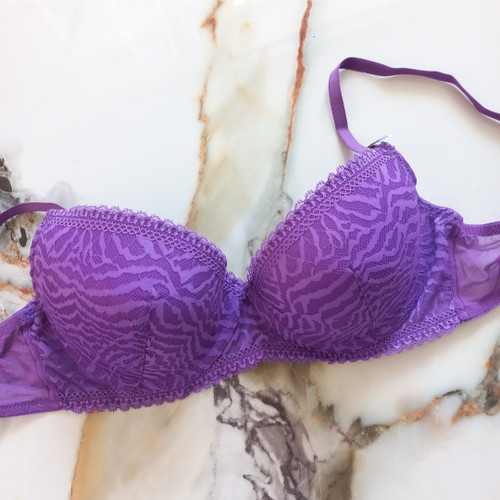 سوتین زنانه اسفنجی فنردار توری بنفش برند اروپایی UNDIZ