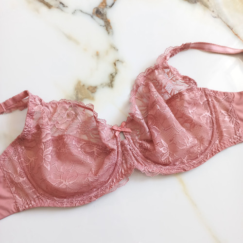 سوتین زنانه فنردار توری زرشکی جلوبازشو برند اروپایی POUR MOI