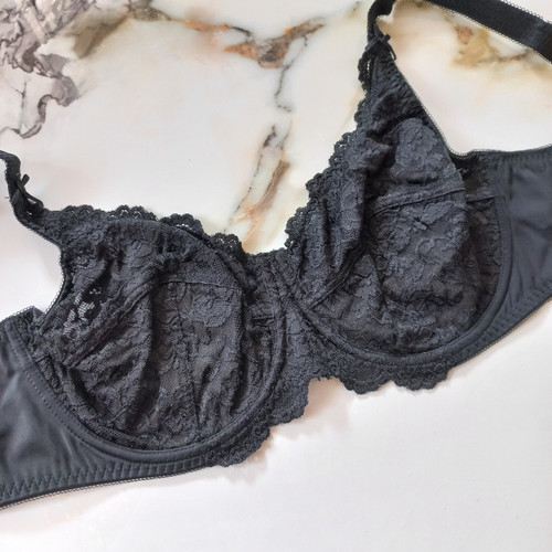 سوتین زنانه فنردار توری مشکی گلدار برند اروپایی
