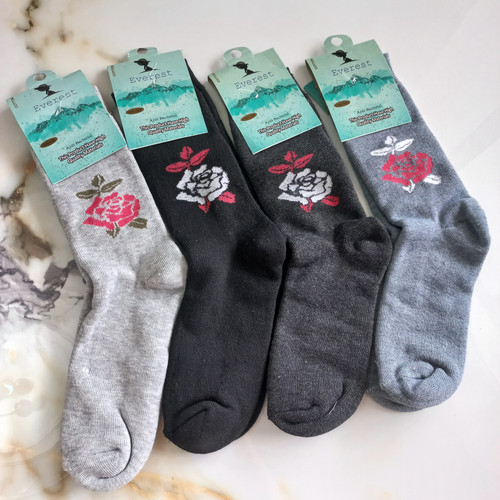 جوراب زنانه ساق بلند نخی ضخیم داخل کورکی طرح گل رز