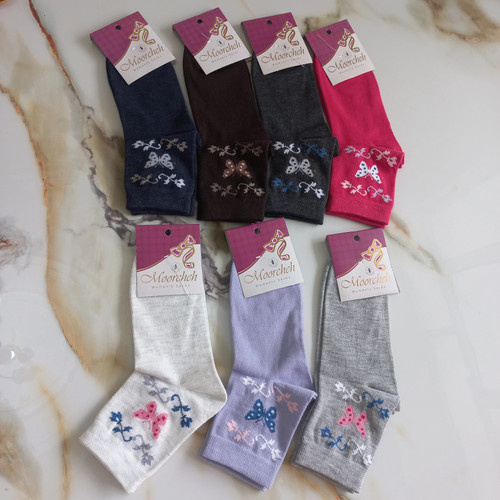 جوراب زنانه ساق بلند نخی طرح پروانه