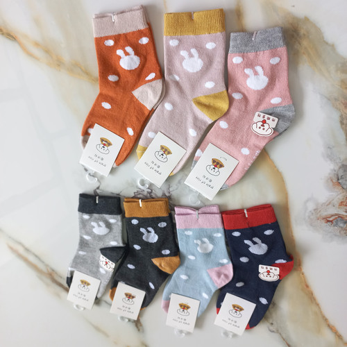 جوراب بچگانه نیم ساق نخی طرح خالدار خرگوش