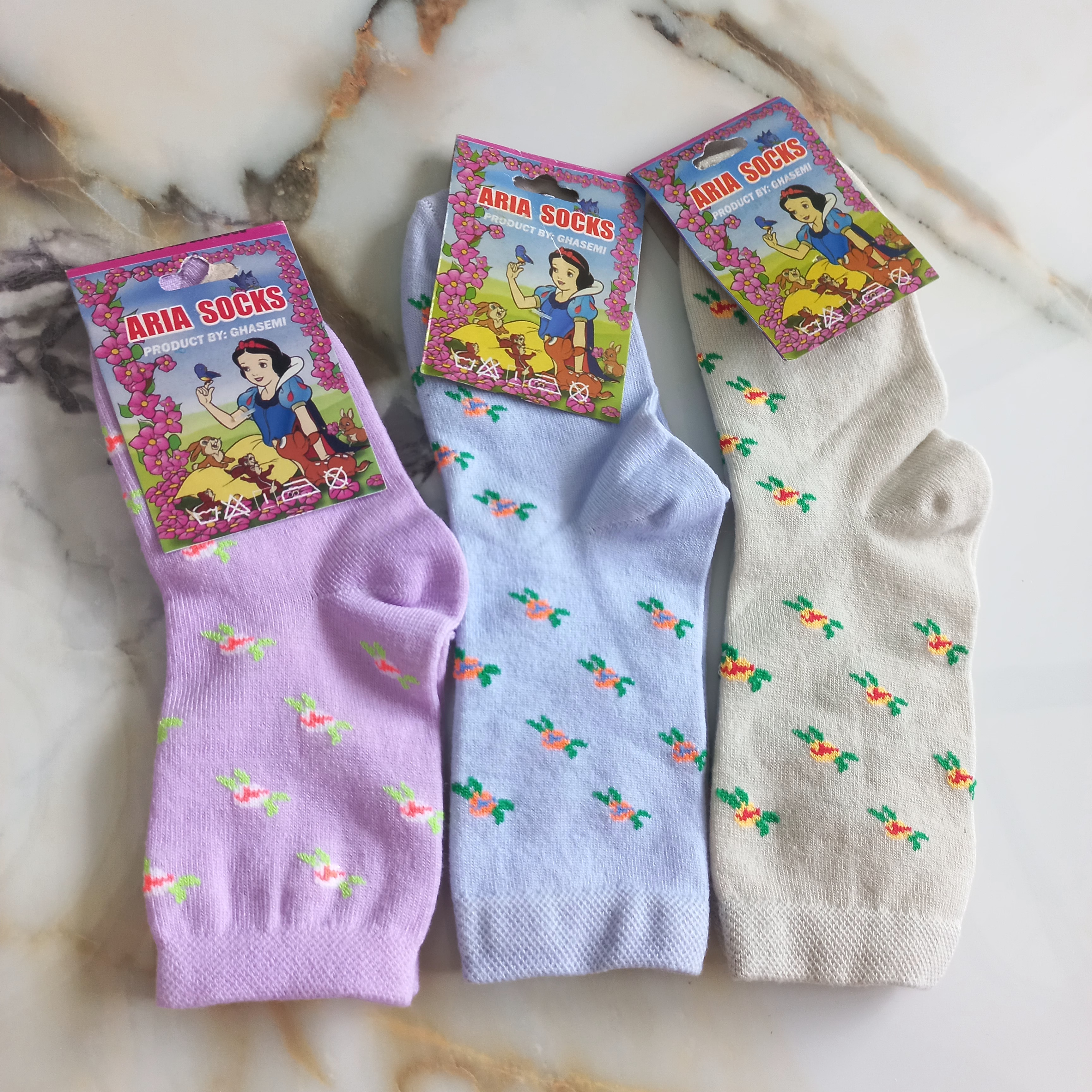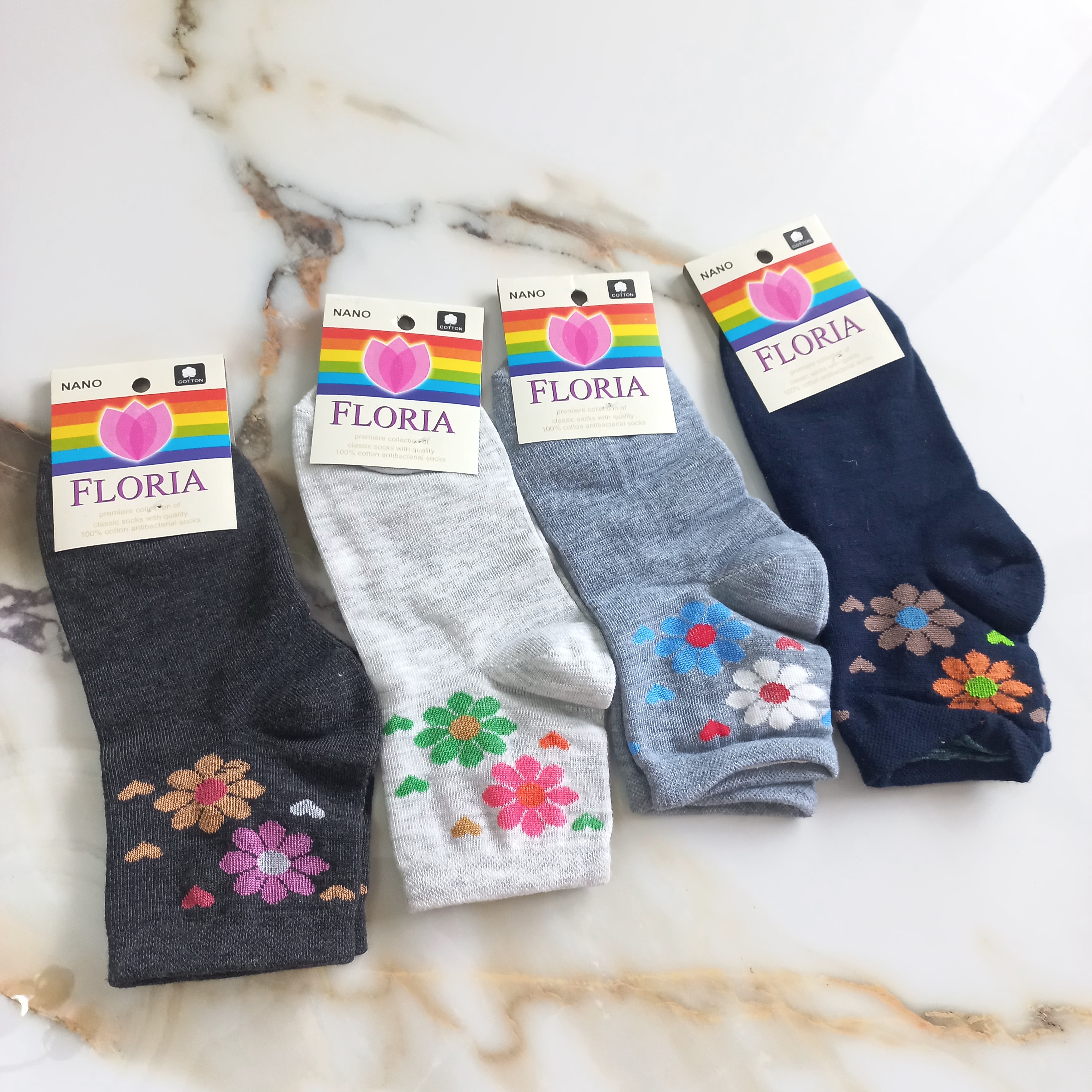 جوراب زنانه نیم ساق نخی طرح گل