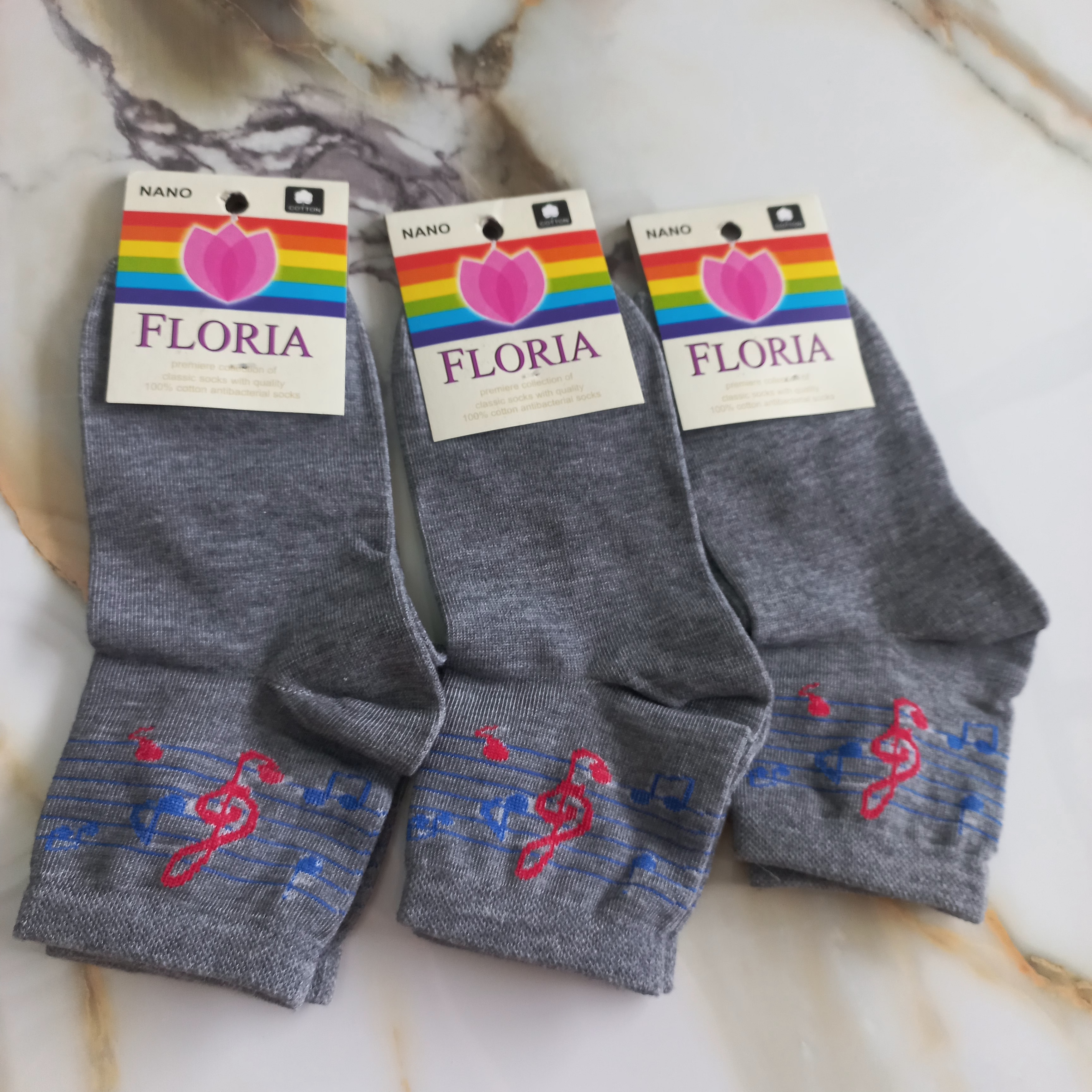 جوراب زنانه نیم ساق نخی طرح موزیک
