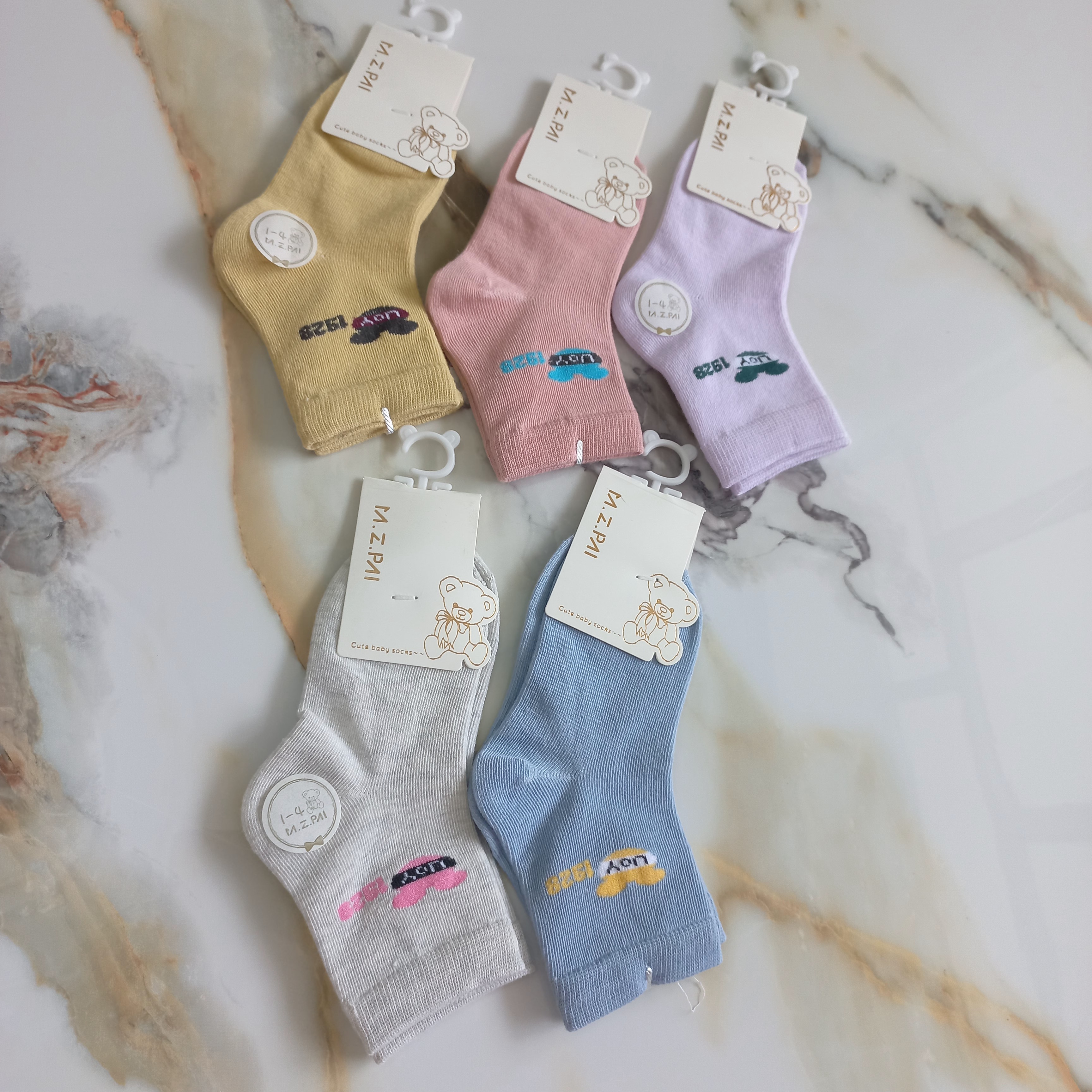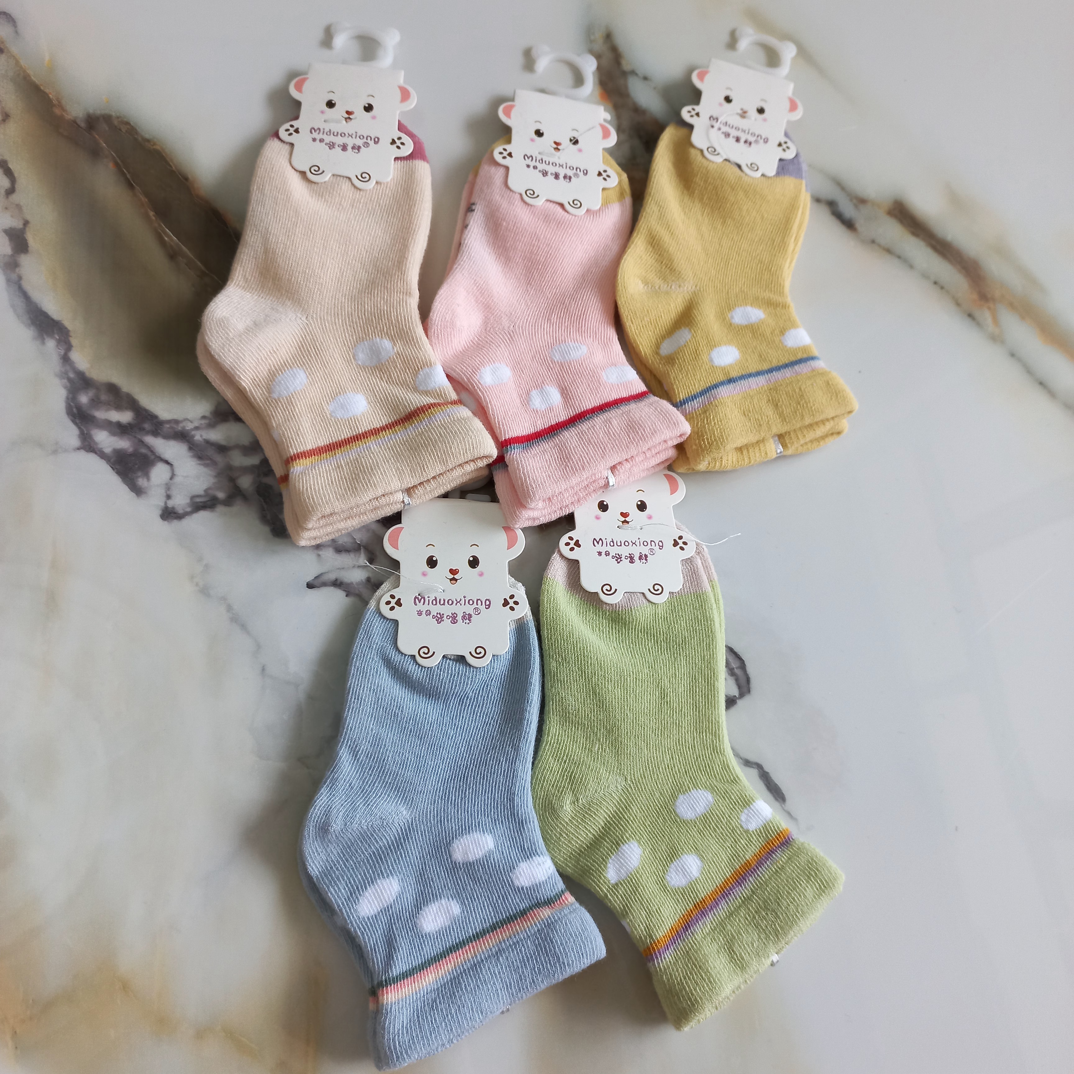 جوراب نوزادی نیم ساق نخی طرح خالدار