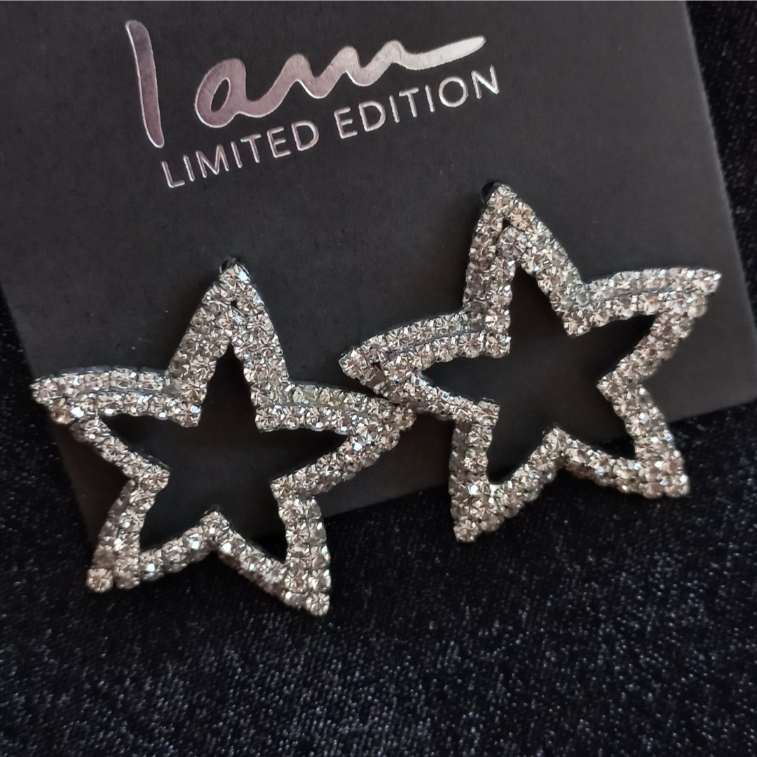 گوشواره زنانه میخی ستاره فول نگین سفید برند اروپایی Iam ضدحساسیت