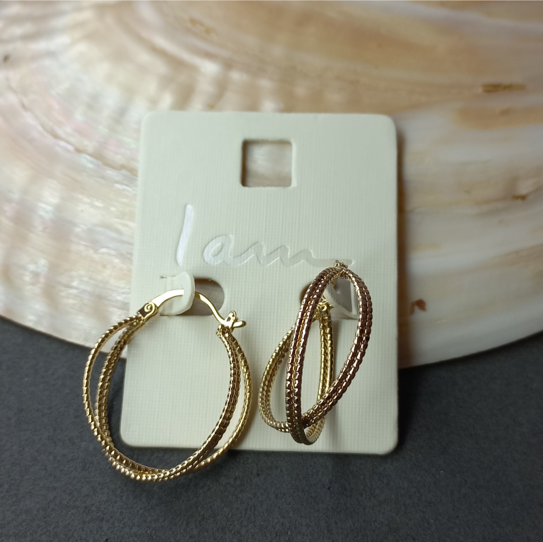 گوشواره زنانه حلقه ضربدری طلایی برند اروپایی Iam ضدحساسیت