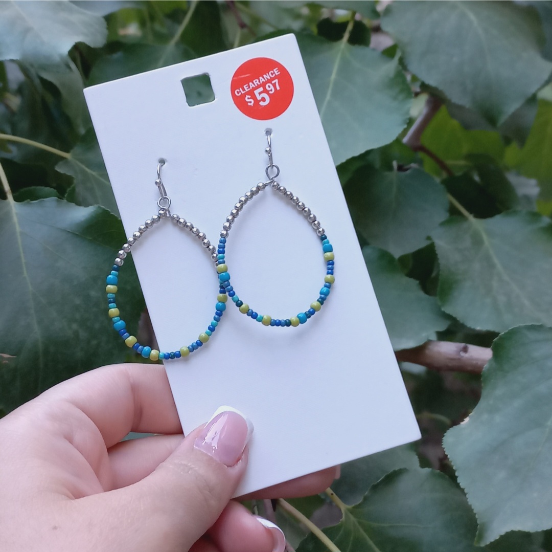 گوشواره زنانه آویز نقره ای منجوقی سبز آبی نقره ای برند اروپایی ضدحساسیت