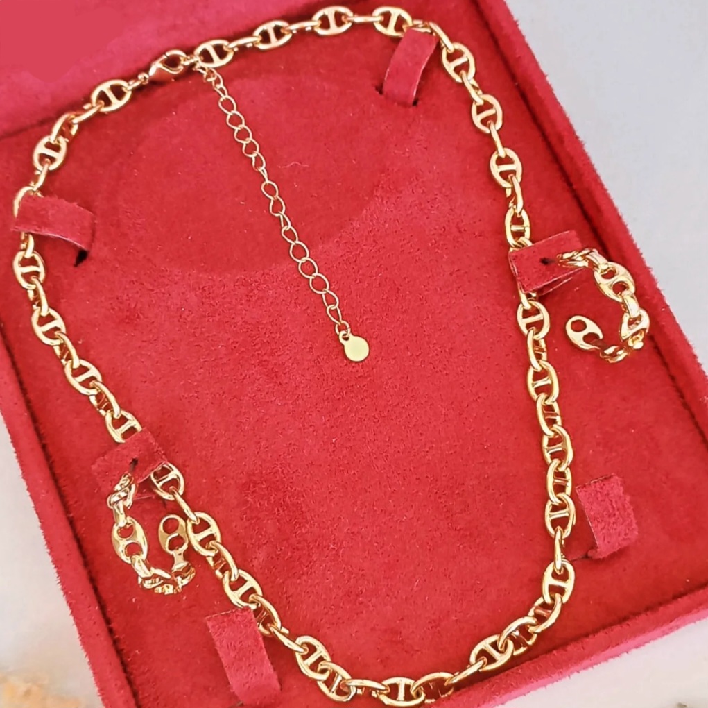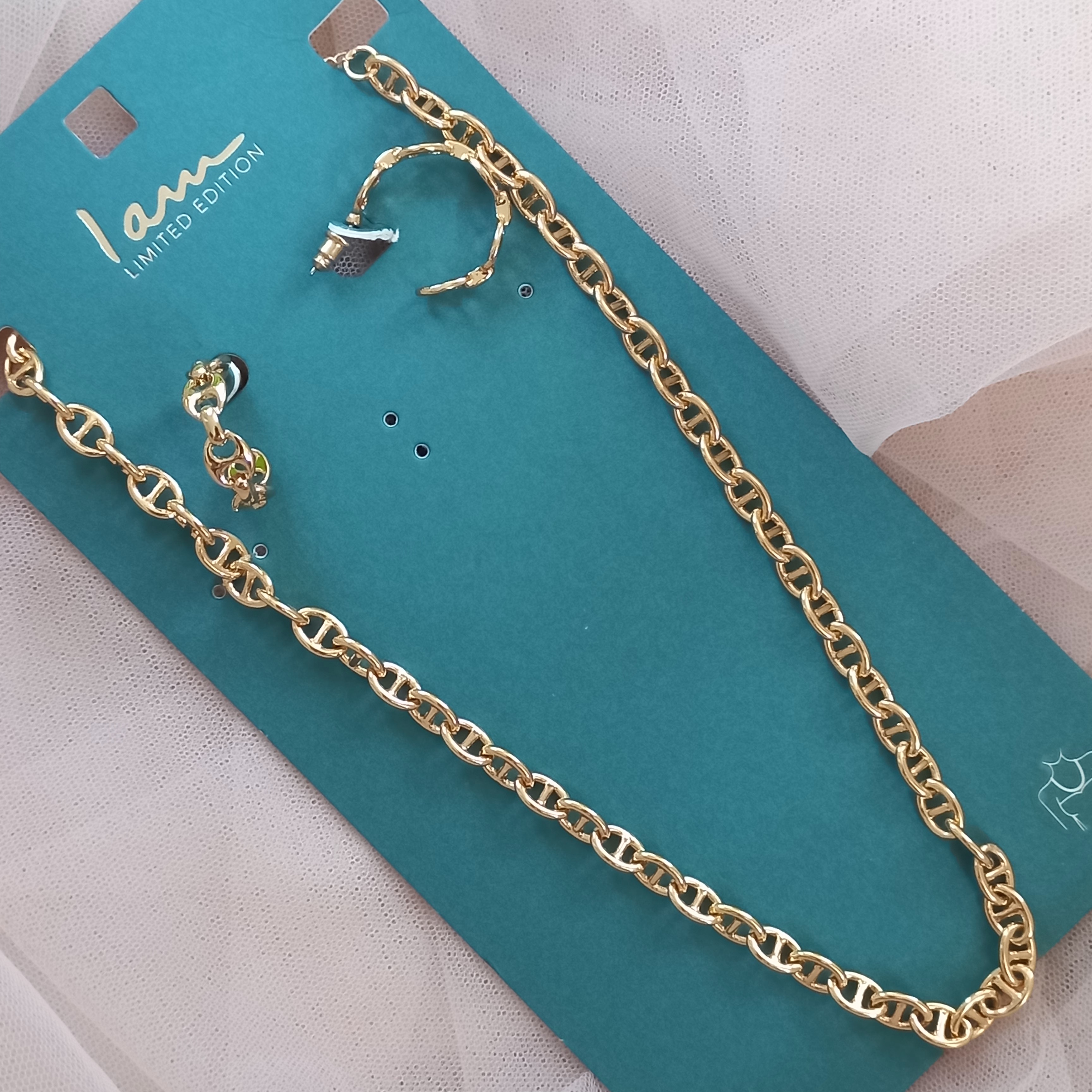 نیمست زنانه طلایی زنجیر و گوشواره طرح دار برند اروپایی Iam ضدحساسیت