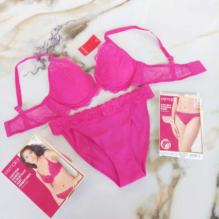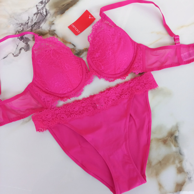 ست سوتین و شورت زنانه پلی استر توری صورتی برند اسمارا آلمانی