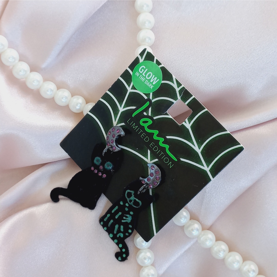 گوشواره زنانه میخی مشکی هالووین طرح گربه نئونی برند اروپایی Iam ضدحساسیت