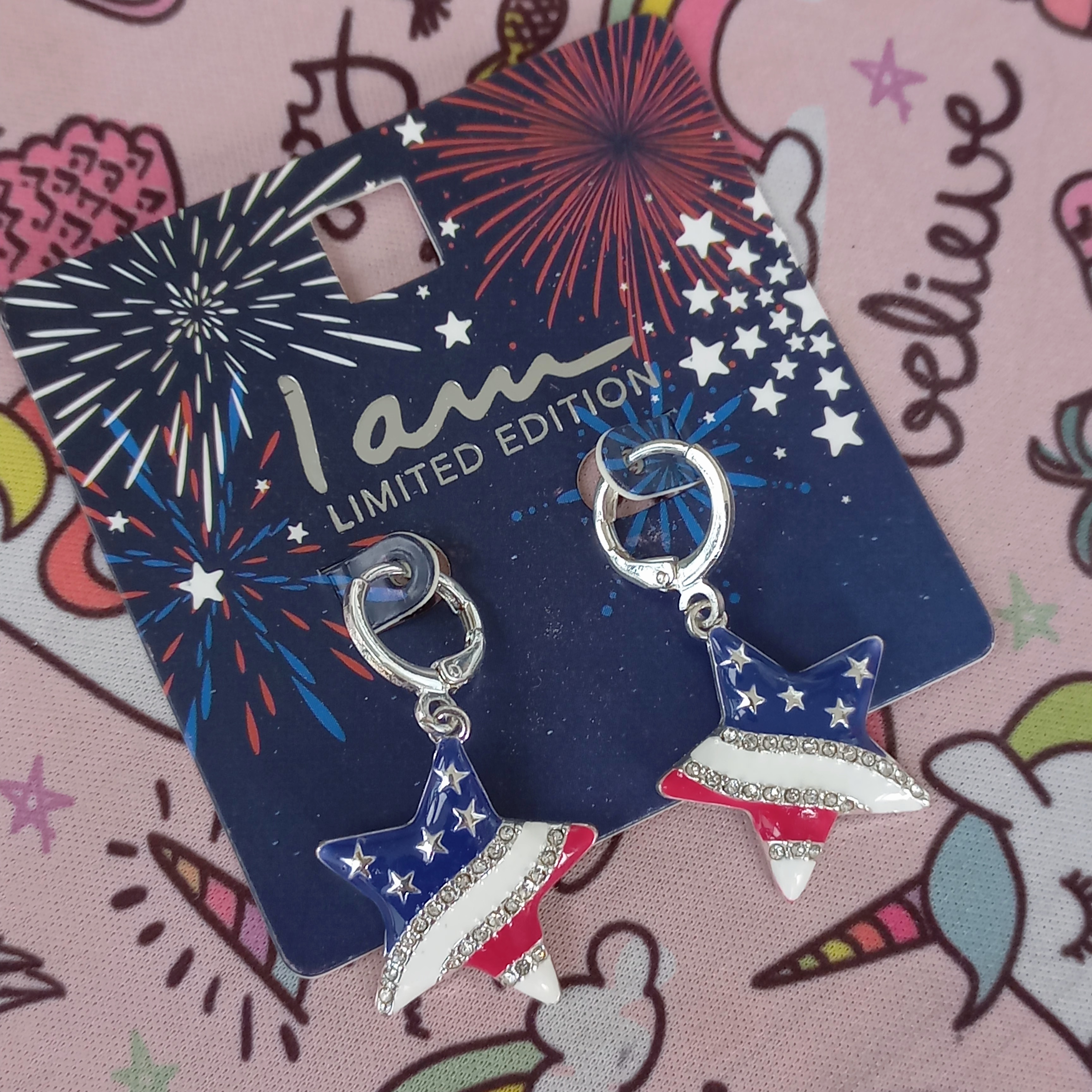 گوشواره زنانه نقره ای طرح ستاره نگین دار آبی قرمز سفید برند اروپایی آلمانی Iam ضدحساسیت