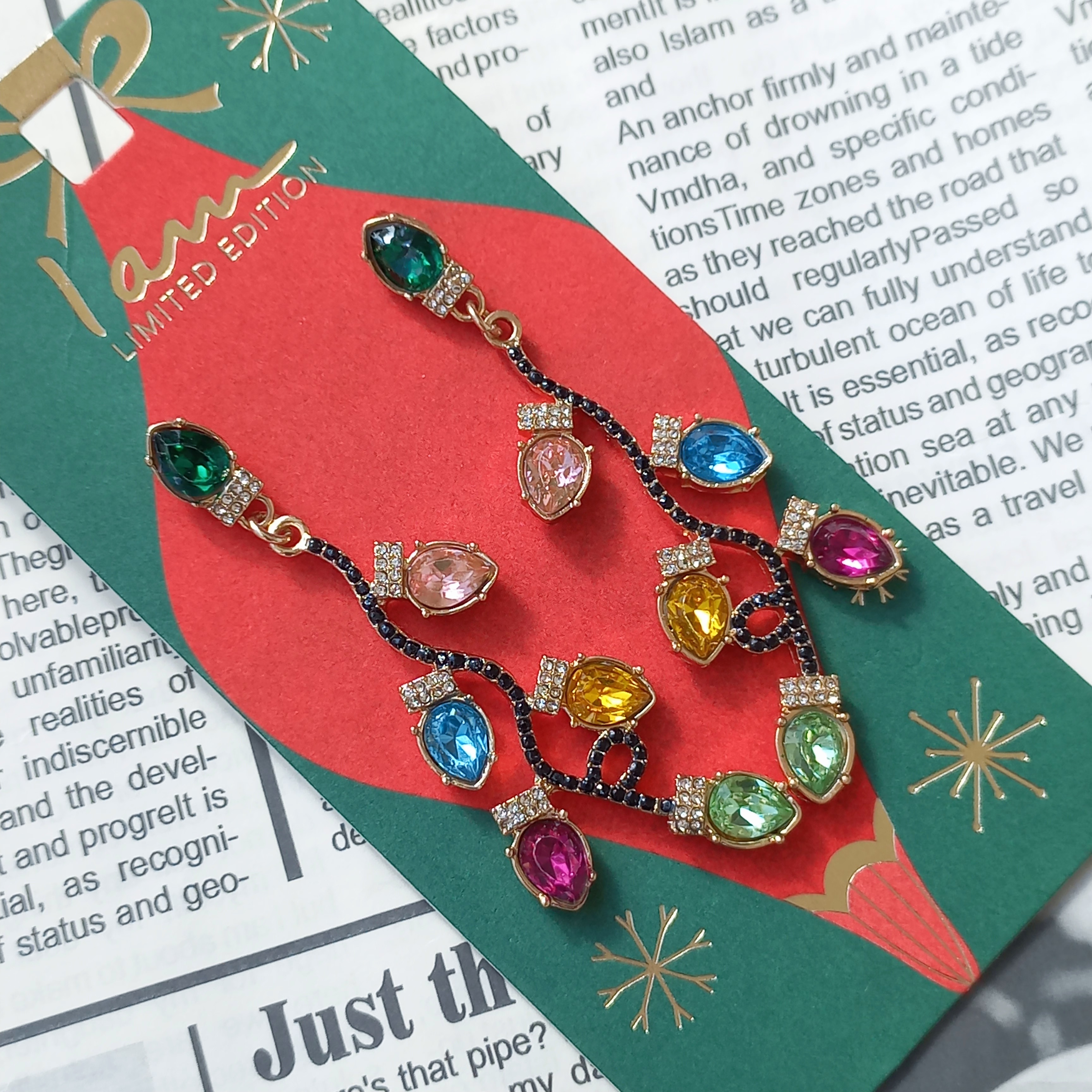 گوشواره زنانه میخی آویز کریسمس نگین رنگی برند اروپایی Iam ضدحساسیت
