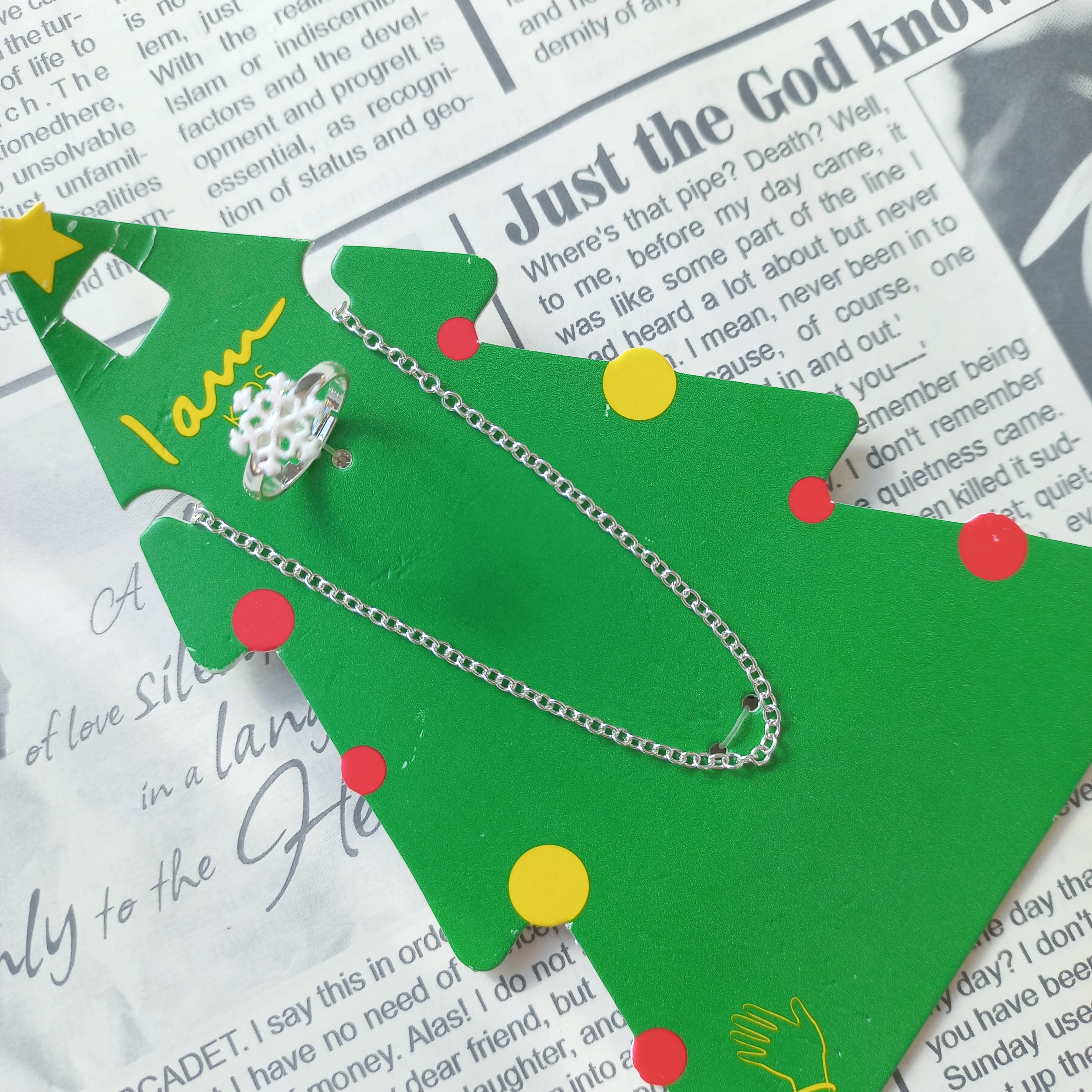 ست دخترانه کریسمس انگشتر دانه برفی و زنجیر ساده برند اروپایی Iam ضدحساسیت