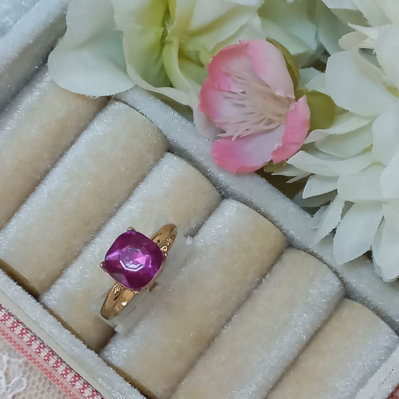 انگشتر زنانه نگین بنفش صورتی برند اروپایی ضدحساسیت