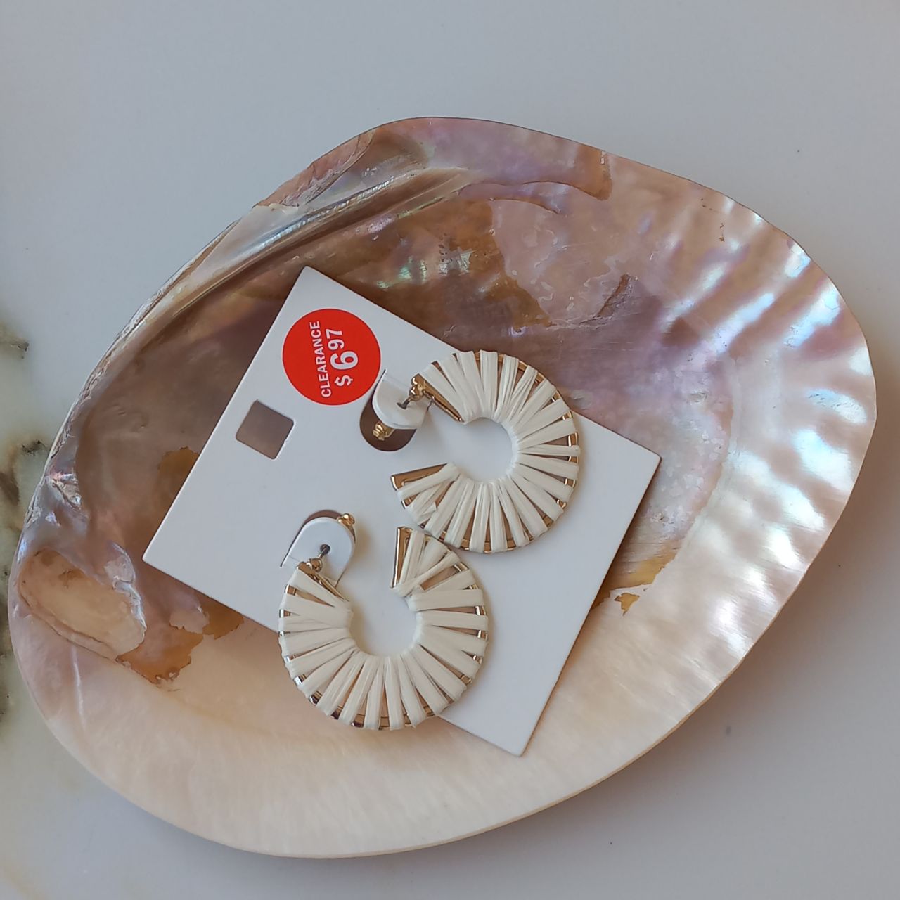 گوشواره زنانه میخی نیم حلقه حصیری سفید برند اروپایی ضدحساسیت