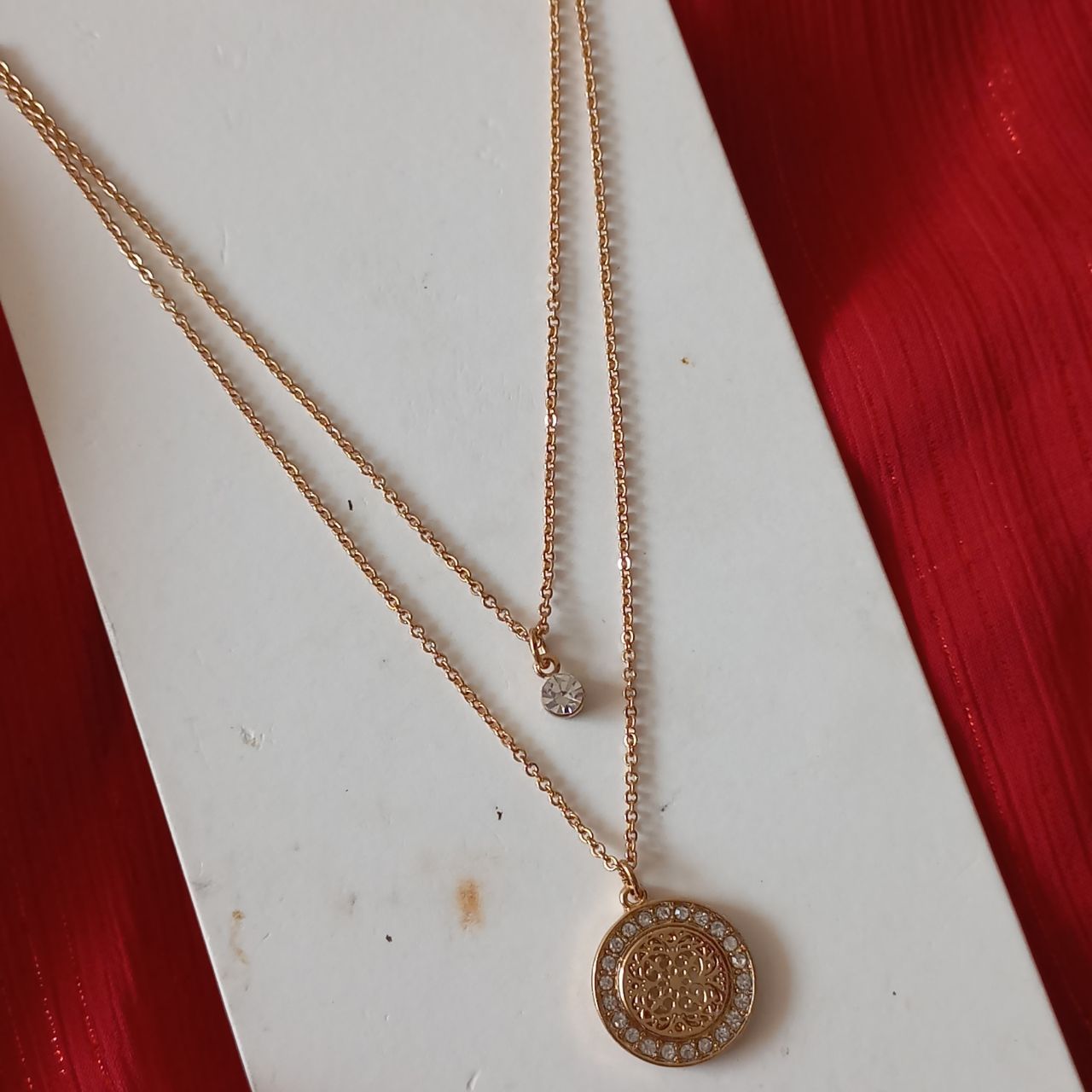 گردنبند زنانه دو ردیف طلایی زنجیر آویز نگین دار برند اروپایی C&A ضدحساسیت